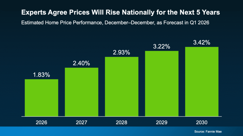 That’s why even in the select areas where prices have dropped slightly this year, the decline is expected to be temporary. According to that same quarterly Fannie Mae survey mentioned above, 85% of the experts say the markets that are seeing mild declines right now will return to positive price growth before the end of 2027.