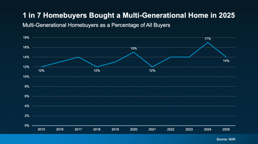 You can see it in the data. According to the National Association of Realtors (NAR), almost 1 in 7 homebuyers (14%) bought a multi-generational home in 2025 (see graph below):